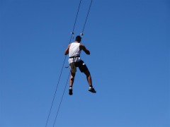 Consiste na descida de um ponto alto para um ponto mais baixo, deslizando por dois cabos de aço, ou cordas estáticas, com a ajuda de duas roldanas.